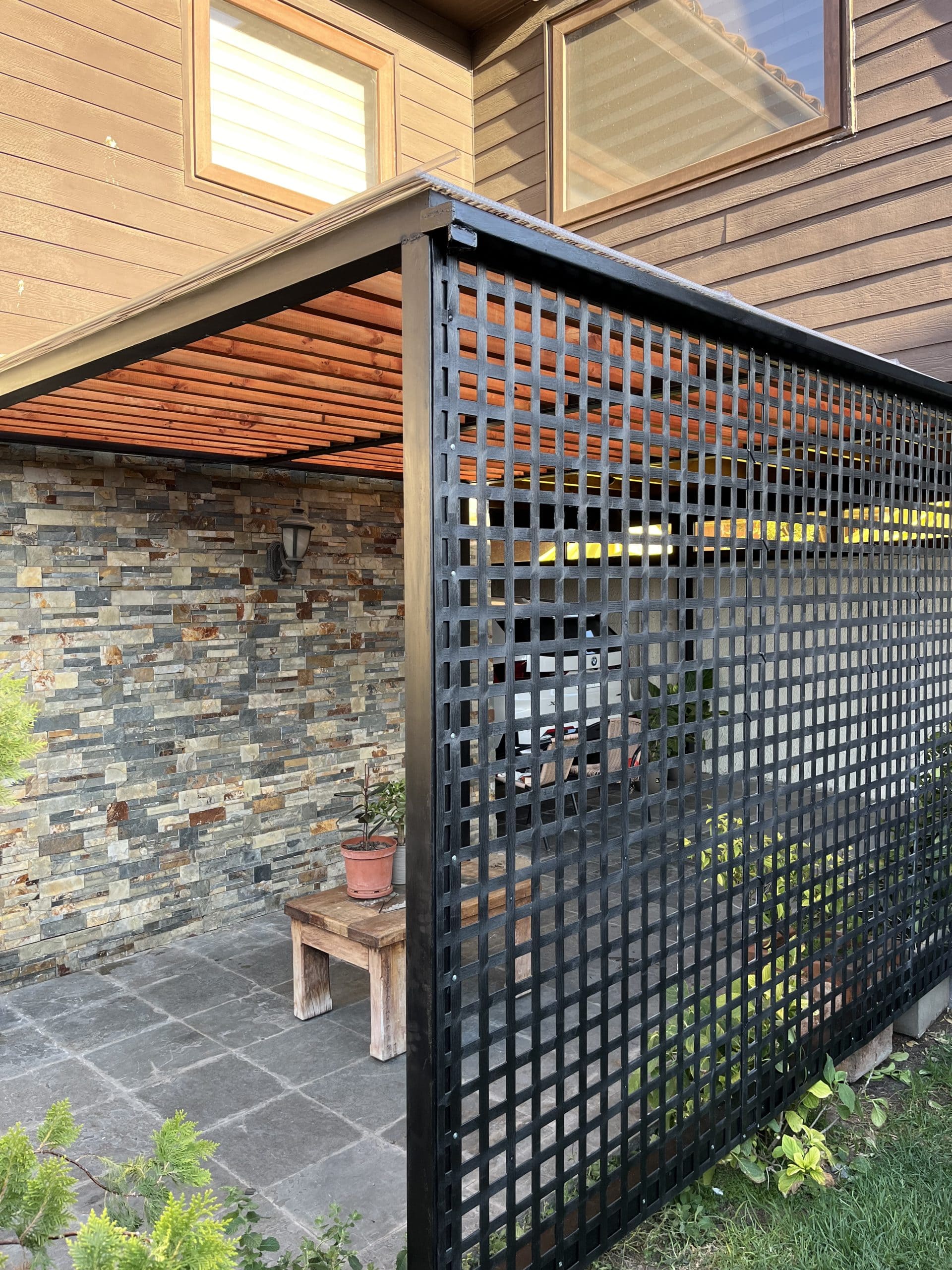 En este proyecto se construyó una pérgola decorativa de 3×3 metros con la siguiente